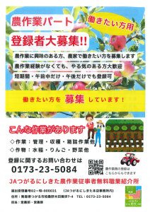 働きたい方 農作業パート登録者大募集(求職者)※印刷してご使用ください
