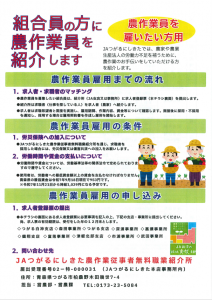 雇いたい方 組合員の方に農作業を紹介します(求人者)※印刷してご使用ください