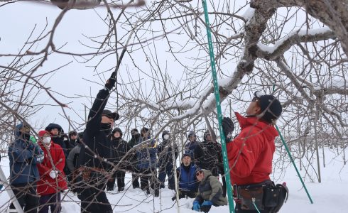 管内では、湛水直播栽培に取り組む生産者が少しずつ増えています。つがる市の圃場で5月20日、湛水直播栽培の播種が行われました。写真は、鉄コーティングされた種もみを機械に入れる様子です。肥料、種もみ、除草剤を一度に散布でき、育苗作業や苗運搬の手間も省け、省力化や軽労化につながります。